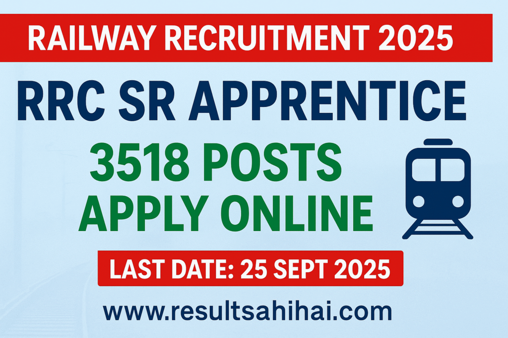 Railway Recruitment Cell, Southern Railway (RRC SR) has released the notification for the recruitment of Apprentices in various trades. Online applications started on 25 August 2025 and can be submitted until 25 September 2025. This recruitment is for a total of 3518 Apprentice posts. Eligible male and female candidates can apply online.